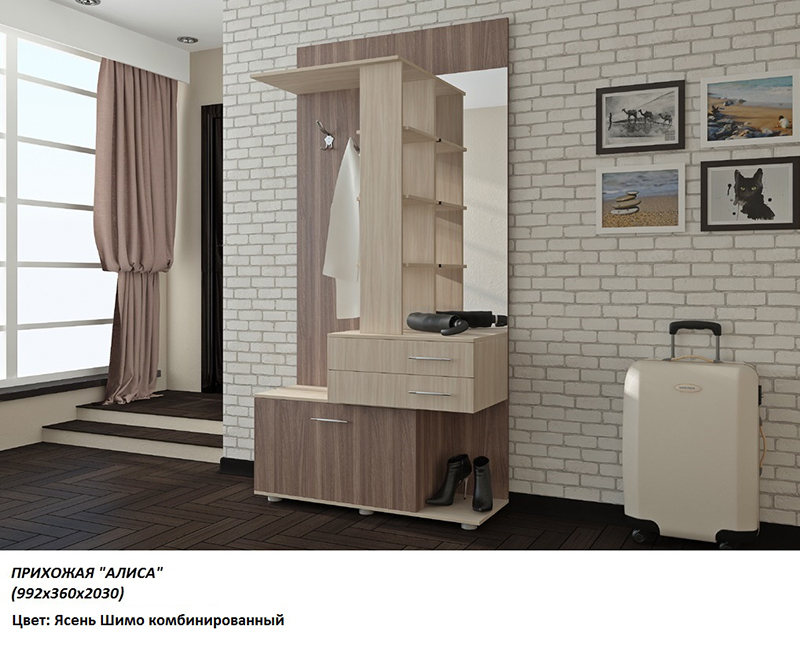 Мебель, отличающаяся хорошей износостойкостью и прочностью, поможет правильно организовать пространство вашей прихожей. Компактная и практичная прихожая является воплощением современного стиля и невероятного комфорта при каждодневной эксплуатации. Комбинированное оформление позволит прихожей вписаться в любой из выбранных вами интерьеров.