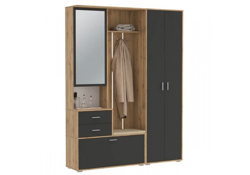 Прихожая «Антре» со шкафом (дуб вотан/диамант серый) фабрика Олмеко