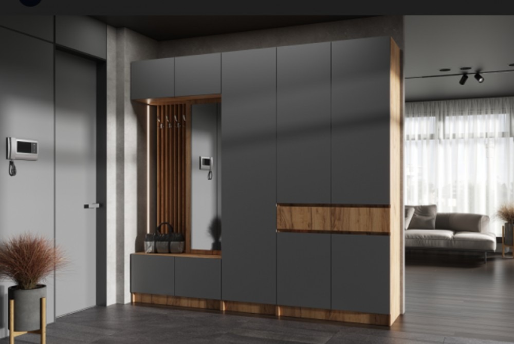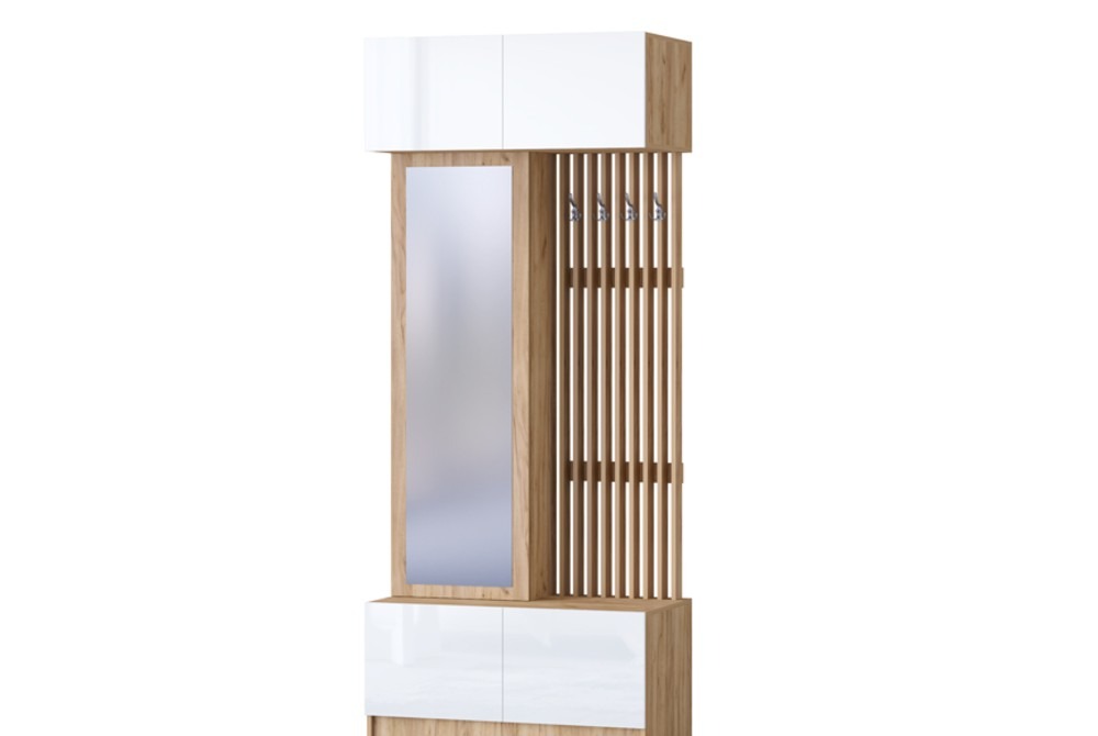 Компактная модель для небольшой прихожей. Данная модель очень вместительна и обладает всем необходимыми элементами и нишами для хранения, которые должна включать в себя современная прихожая.