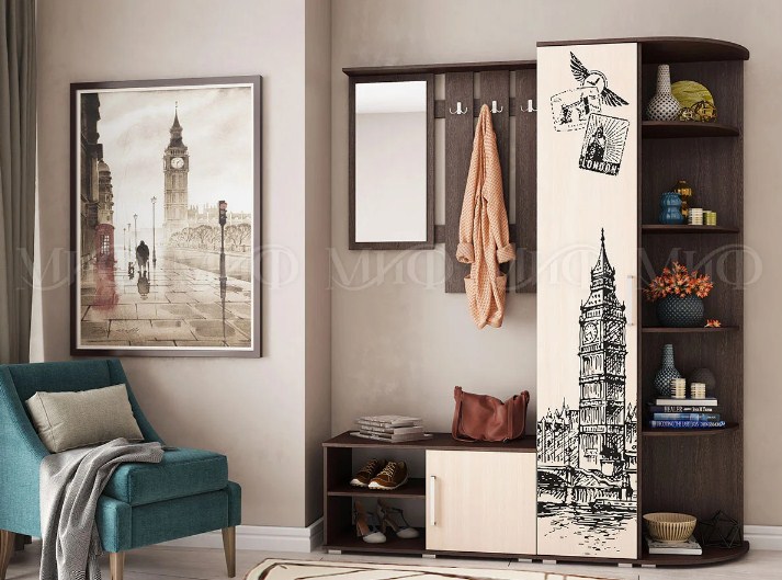 код 103014Небольшая модель прихожей выполненная в сочетании венге и белого дуба.