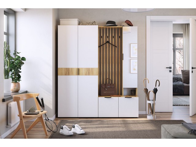 Состав: вешалка, тумба, шкаф, тумба для обуви. Материал: ЛДСП.