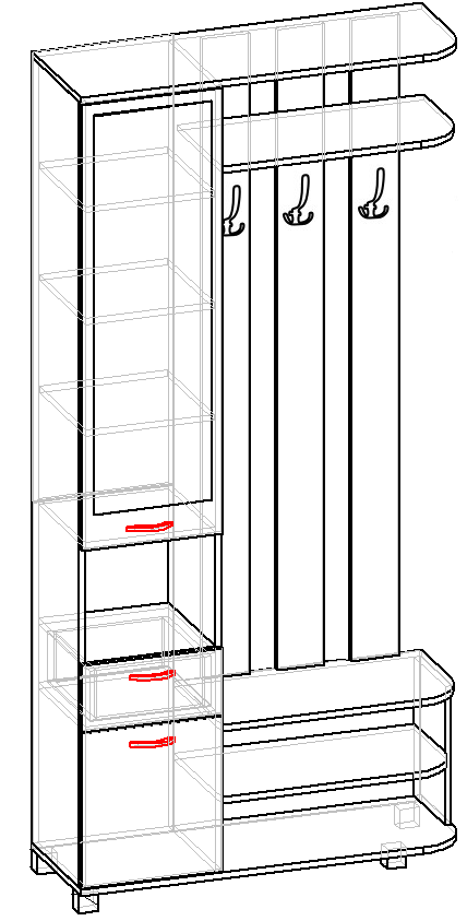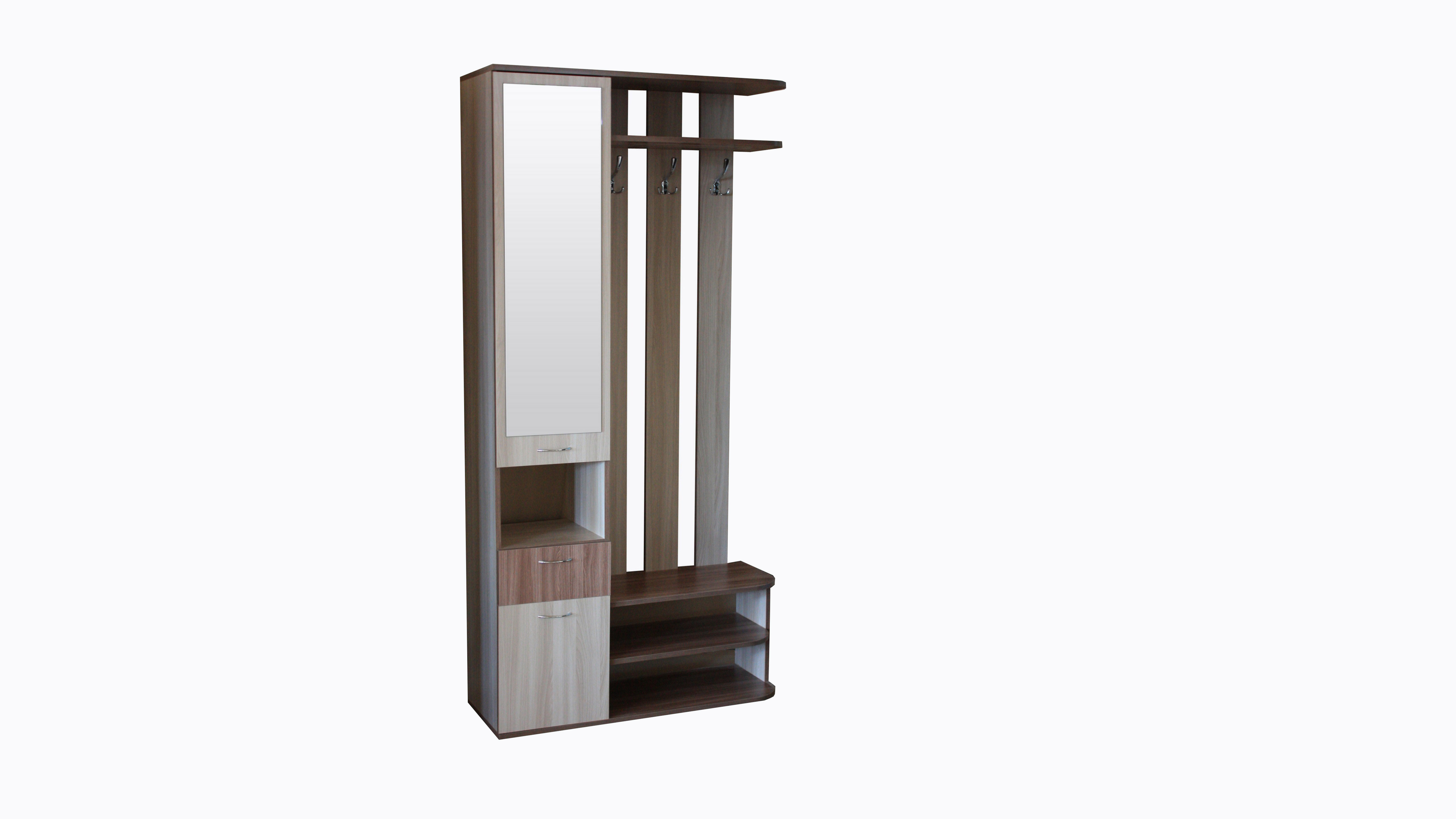 Простая и компактная прихожая вместительна и функциональна, позволит разместить все необходимые вещи: обувь, верхнюю одежду, головные уборы и различные мелкие вещи. Благодаря гармоничному сочетанию цветов прихожая создаст в вашей квартире ощущение уюта, тепла и комфорта. Прихожая выпускается в левом или правом исполнении.