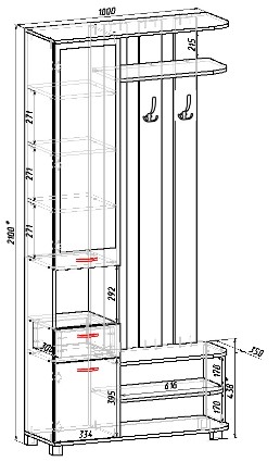 Размер (Ш x Г x В): 1000 x 350 х 2080 мм