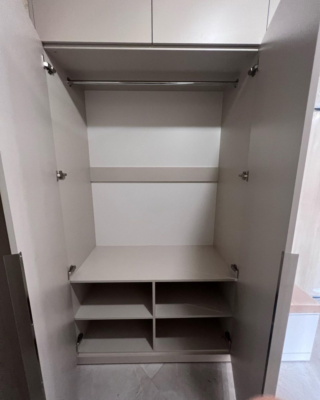 Шкаф 2 ствр/ящики, вешалка с обувницей, угловые полки.