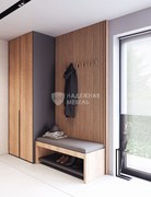 В конструкции прихожей: зеркало, вешалка, шкаф, зоны для хранения.