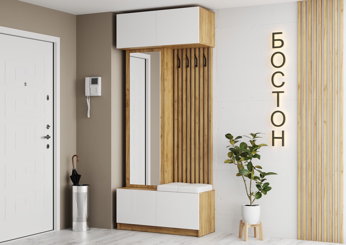 Прихожая «Бостон-1» (дуб крафт золотой/МДФ белый глянец)