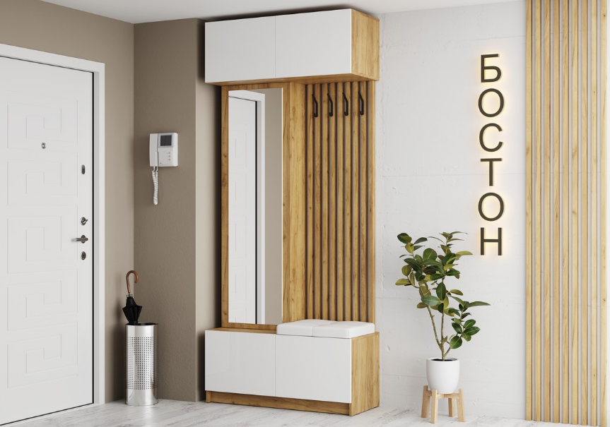 Прихожая «Бостон» дуб крафт золотой/белый глянец МДФ