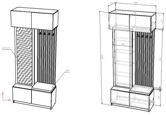Размер (ШхГхВ): 2000х510х2236 мм. Материал: ЛДСП, зеркало.