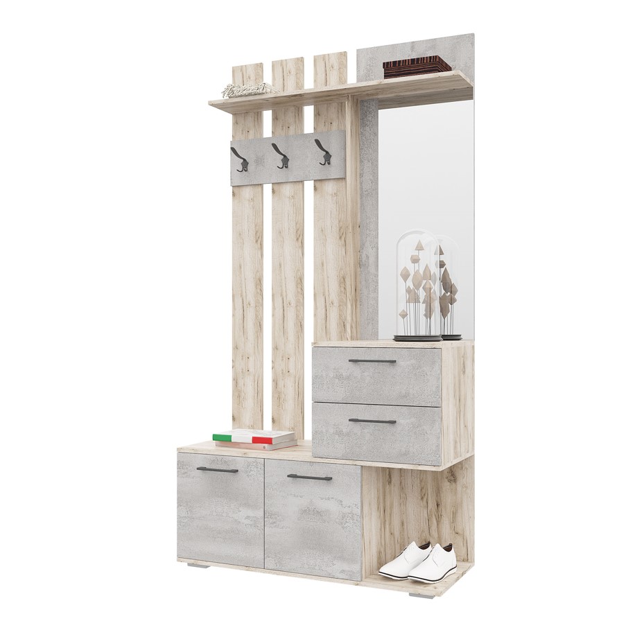 Прихожая «Бостон со шкафом ШК-600» (дуб крафт серый/дуб крафт серый, бетонный камень)