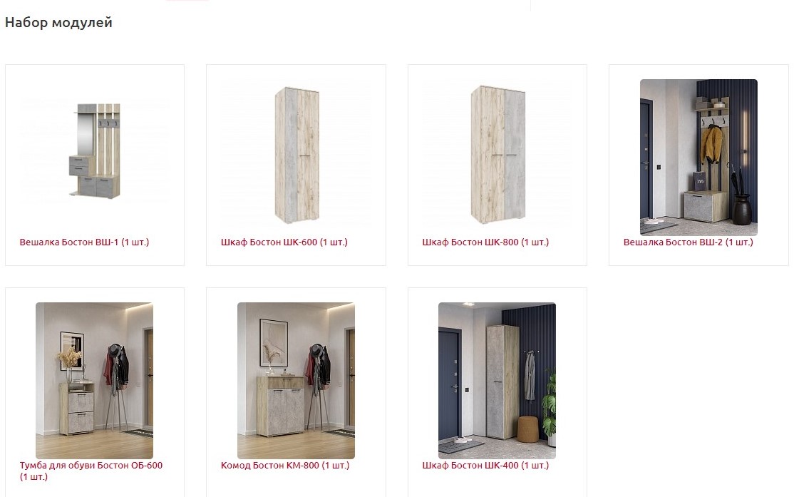 Эстетичная модульная коллекция мебели для прихожей. Материал: МДФ покрытый плёнкой, ЛДСП.