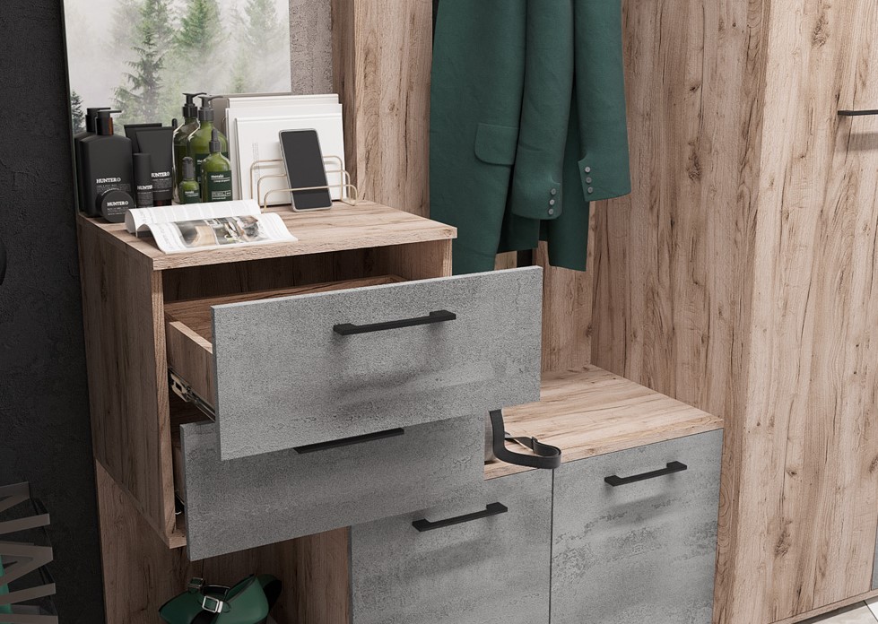 Прихожая «Бостон со шкафом ШК-800» (дуб крафт серый/дуб крафт серый, бетонный камень)