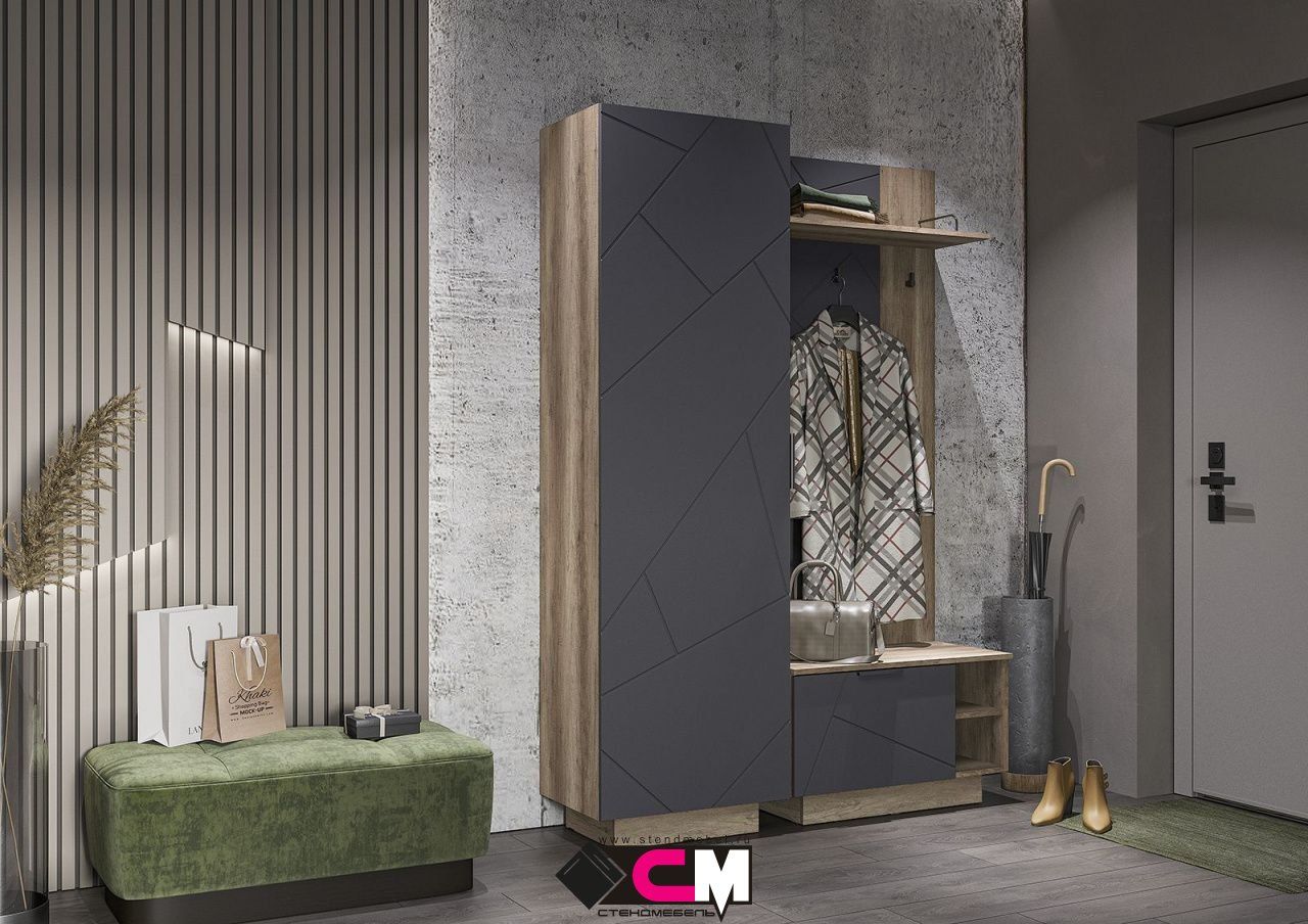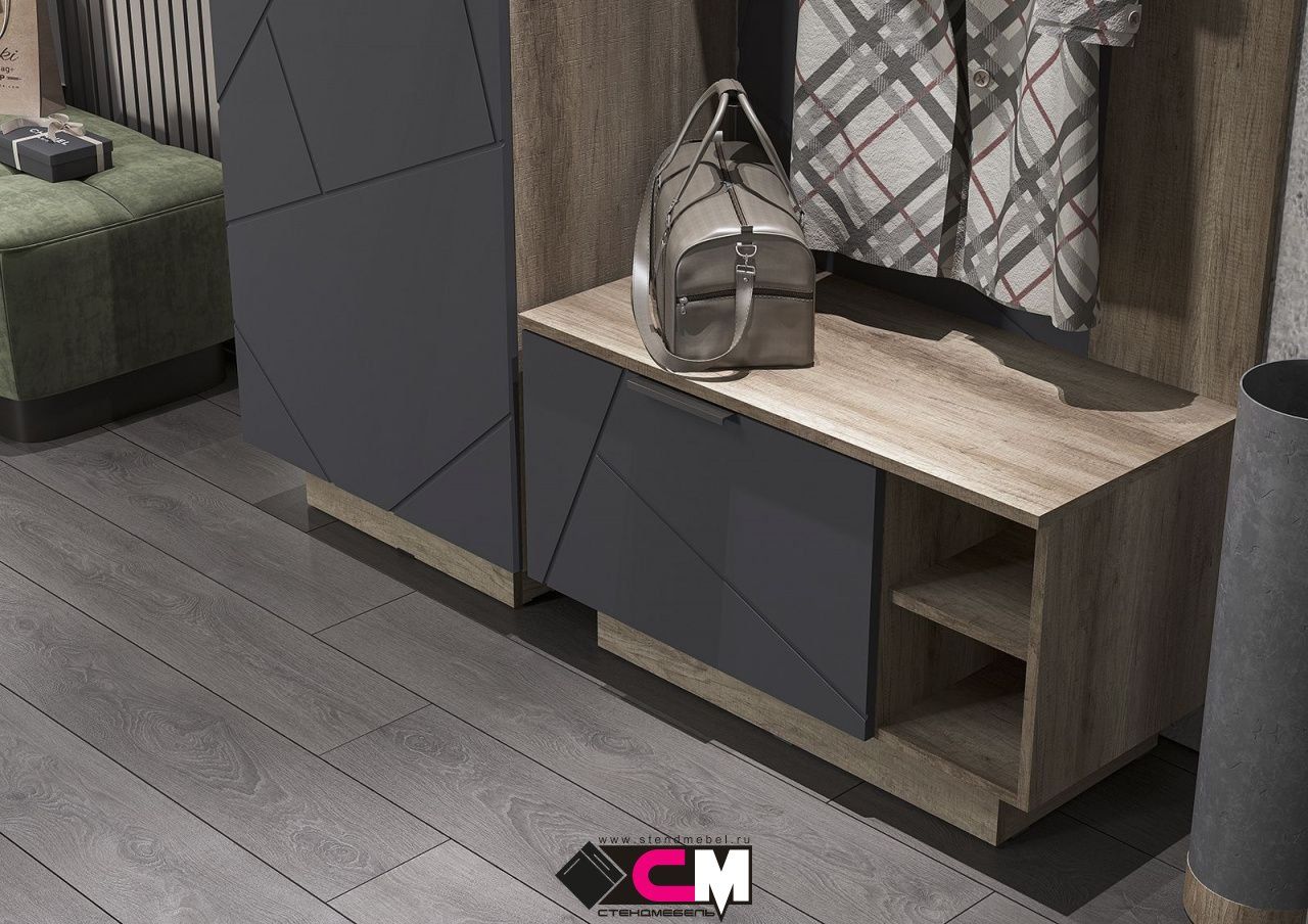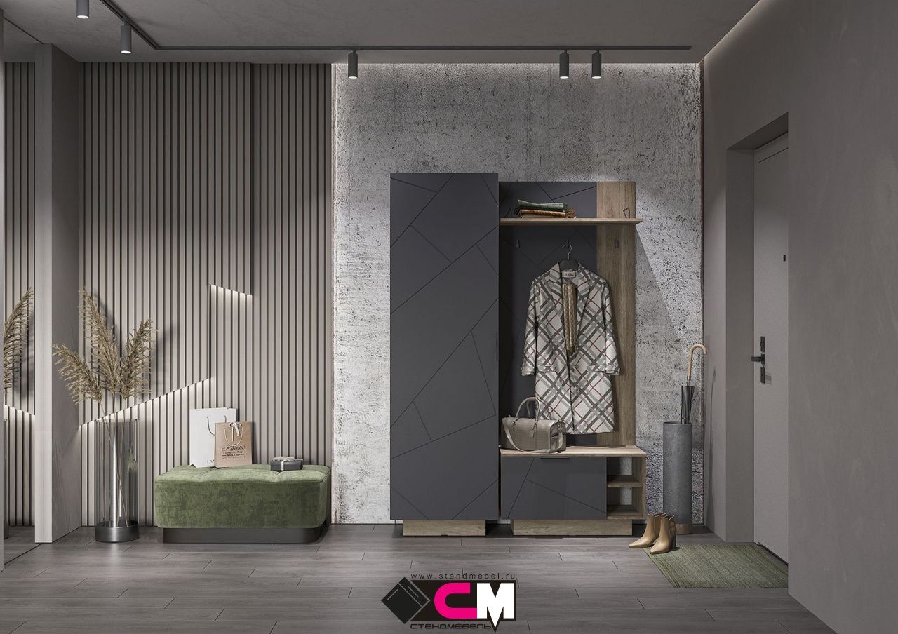 Модульная прихожая «Эдинбург» - Комплект 2 - Крафт серый / Железный камень (Стендмебель)