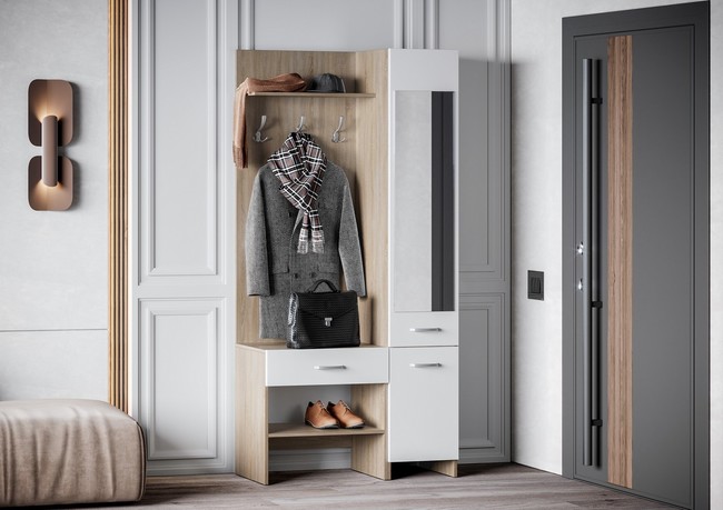Угловая модульная прихожая в современном исполнении.