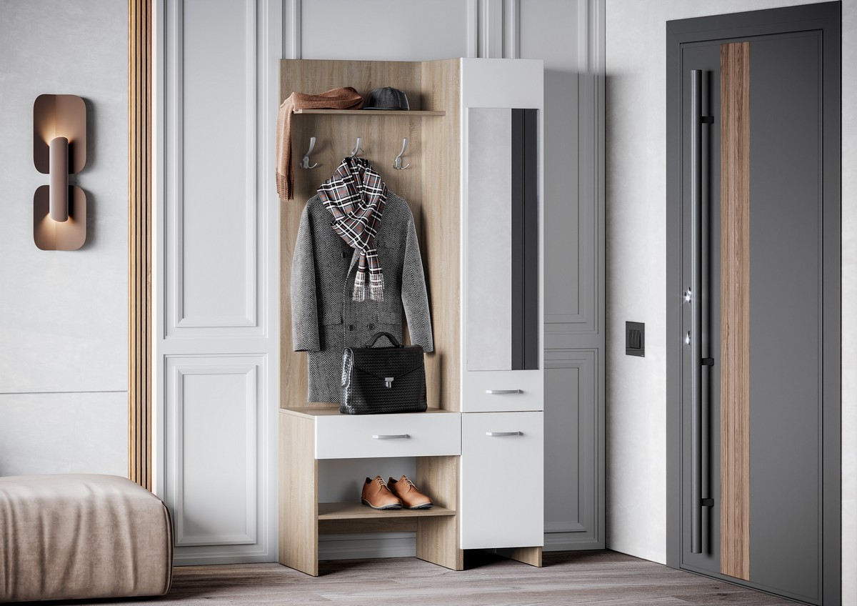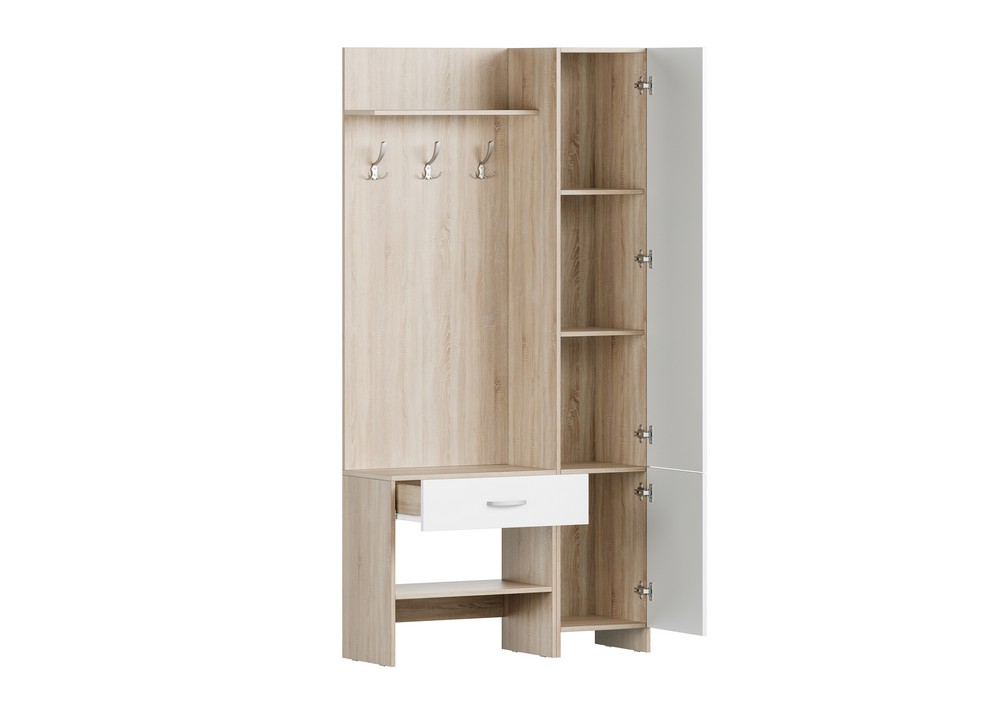 Прихожая «Интер» дуб сонома-белый, с распашным шкафом (1.56м)