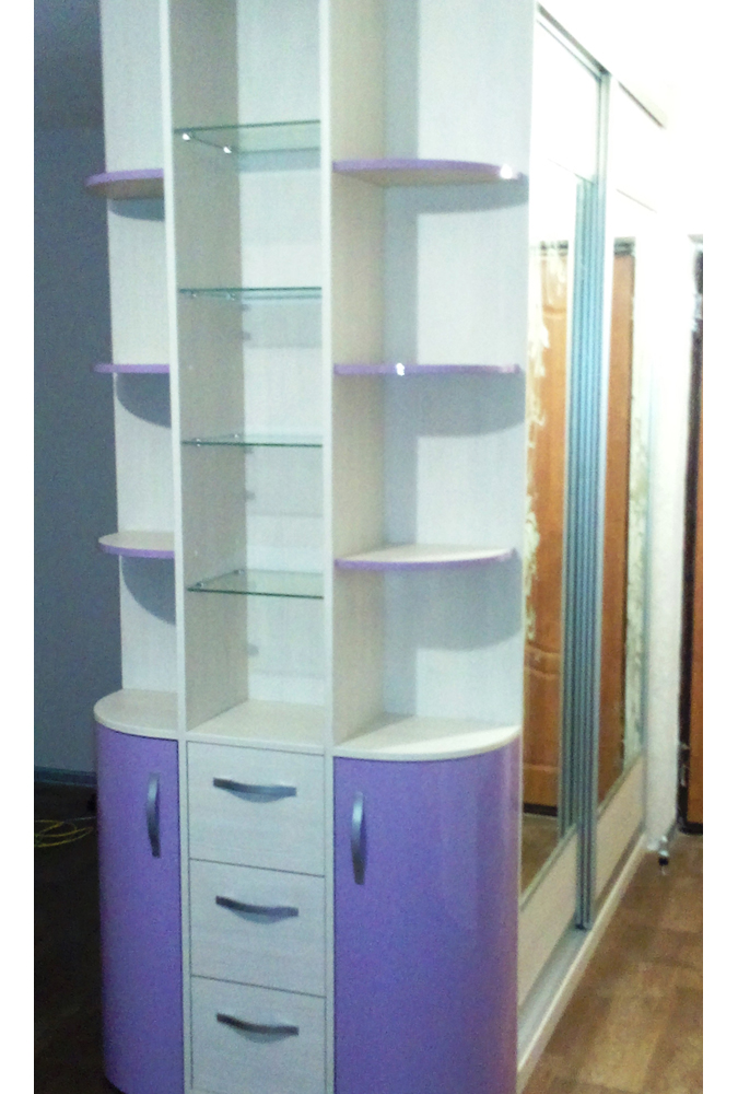 код 65955Цвет: белый, сиреневый. Раздвижные створки шкафа.