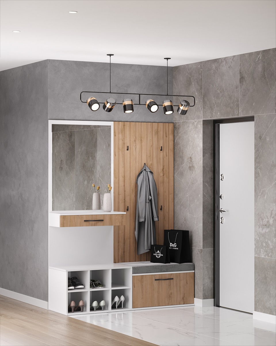 Функциональный и лаконичный дизайн преобразит интерьер прихожей.
