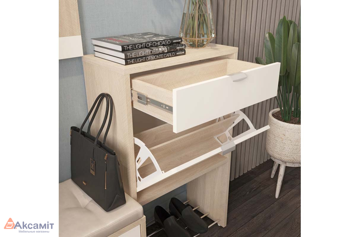 - Тумба-обувница Эльтон Мод. 7 (Палермо/Перламутр). Габариты (ШхГхВ) в мм - 600х384х450