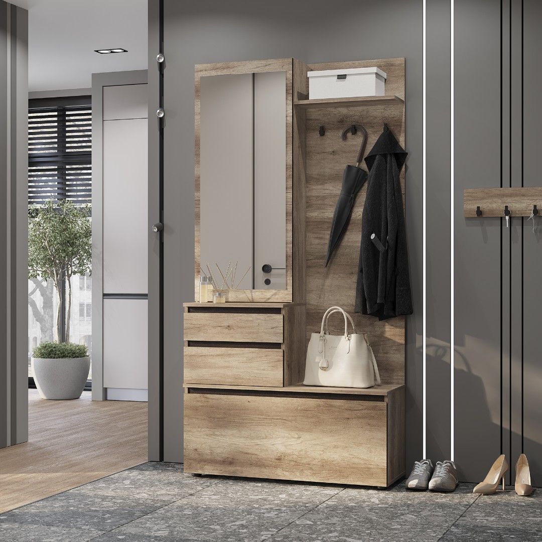 Прихожая Энигма – практичное и функциональное решение для малогабаритной входной зоны. Стильное цветовое исполнение изделия смотрится необычайно эффектно, благородно и солидно. Модель можно использовать как самостоятельно, так и в сочетании с другими модулями из одноименной коллекции.