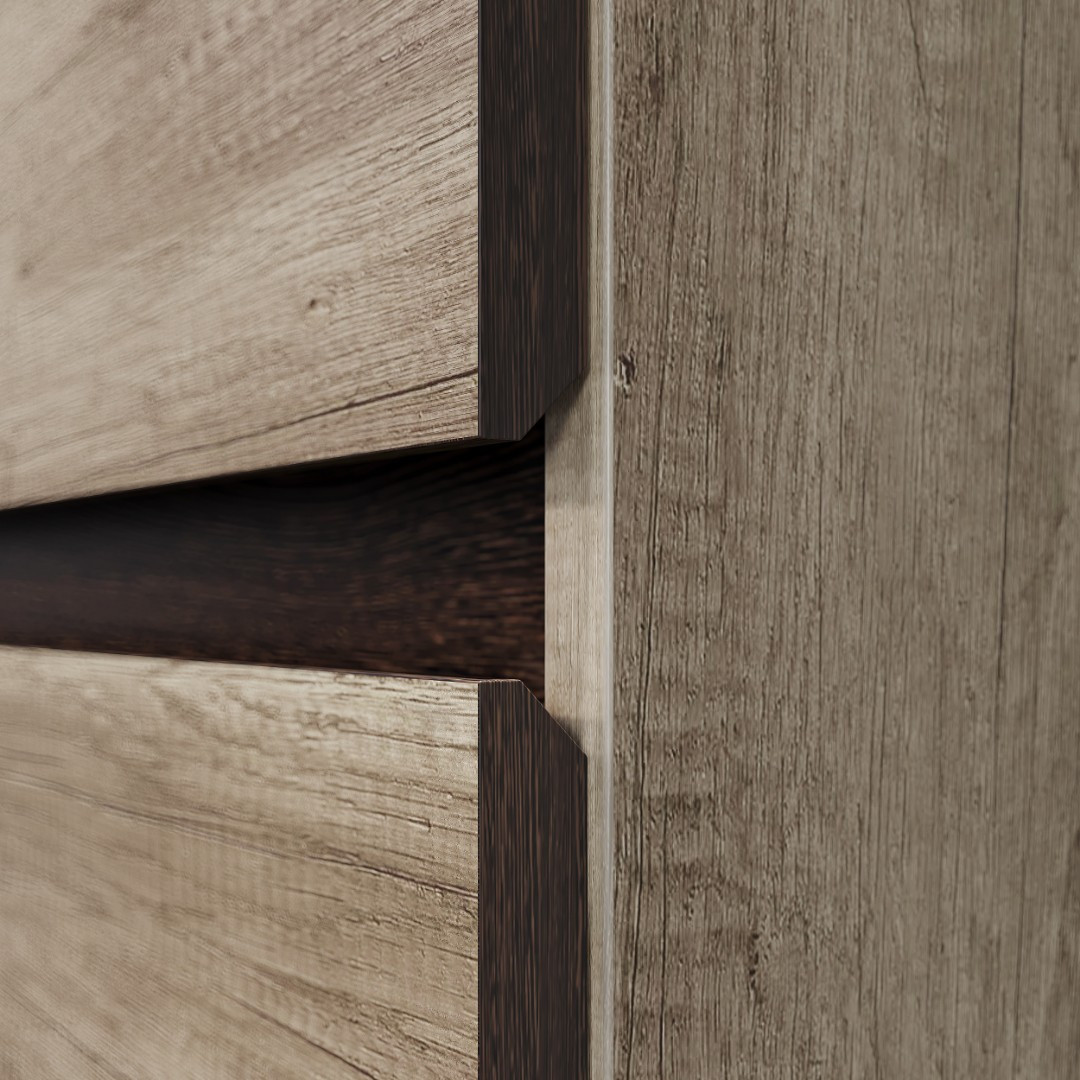 Фасадные части цвета «Дуб каньон» кромятся цветом «Венге».