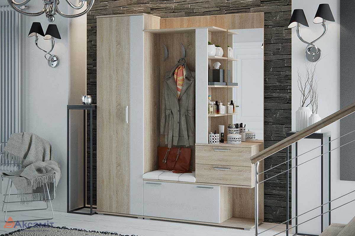 Секция в прихожую «Антре» (дуб сонома/белый) Олмеко