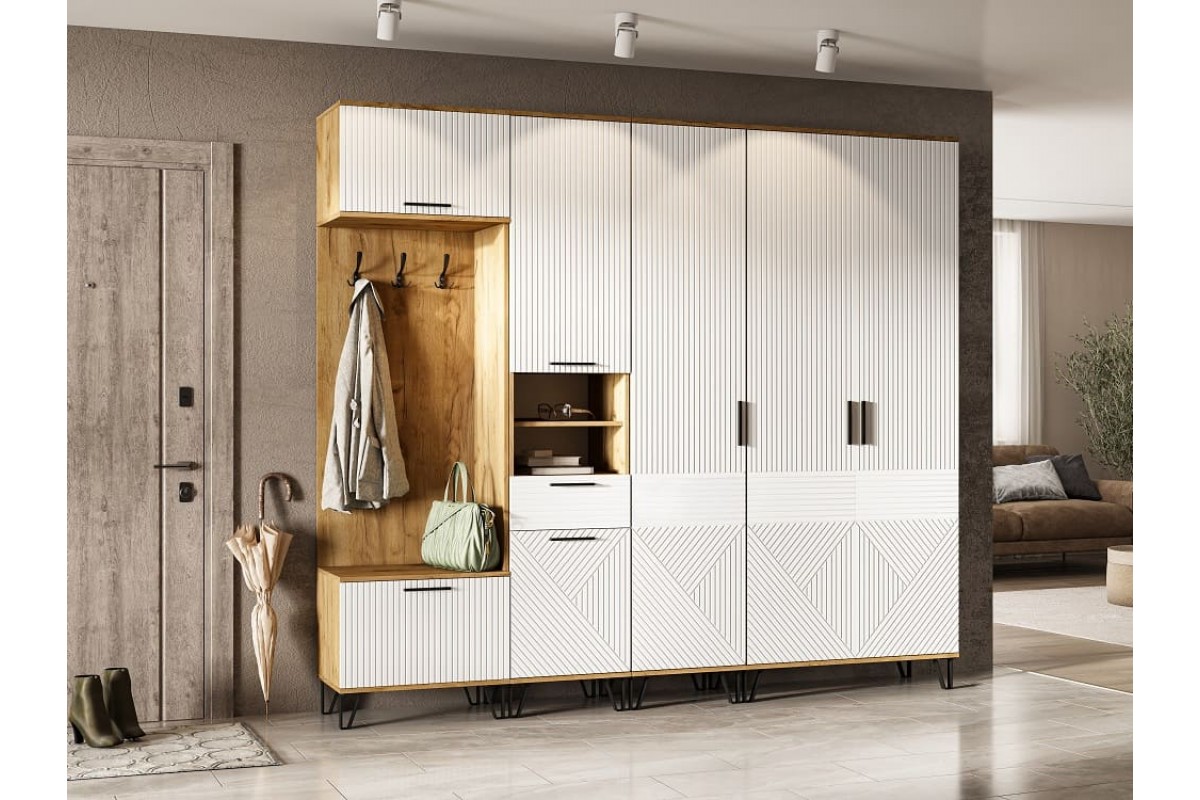 Прихожая «Флэш-4» (дуб крафт золотой - браш вайт)