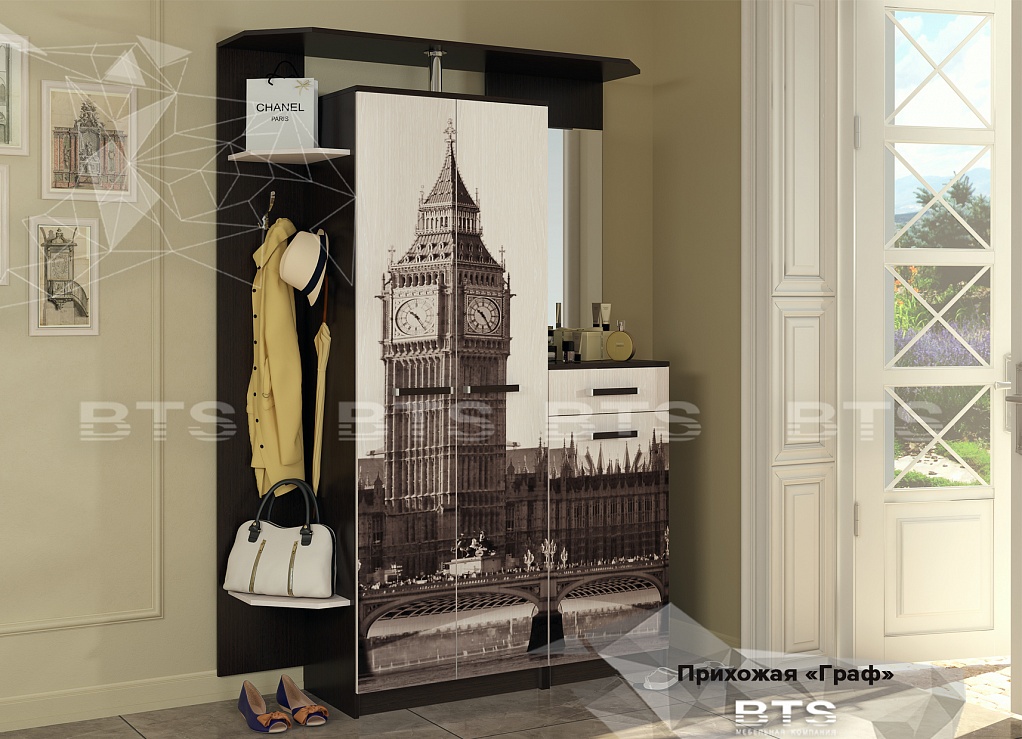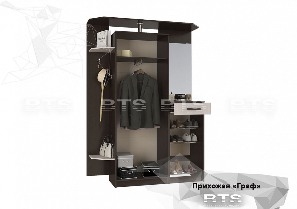 Модульная функциональная система в прихожую. Материал: ЛДСП, зеркало с фацетом.