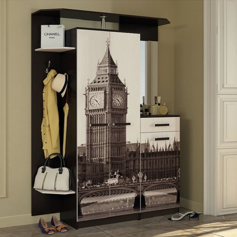 Тумба обувная с открытыми отделениями для принадлежностей и панель с крючками.