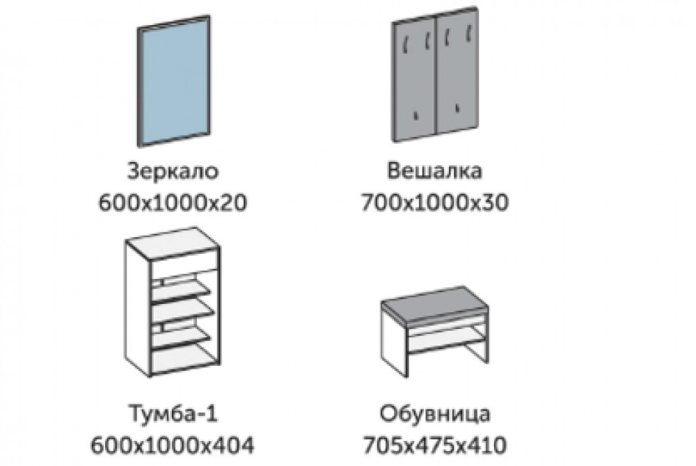 Стоимость указана на комплектацию на первом фото: пенал, тумба Т-1, зеркало, обувница, вешалка.