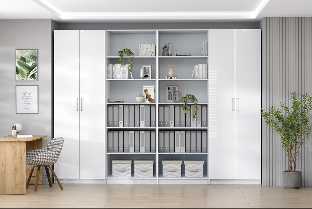 Комбинации модулей позволяют подобрать необходимый размер и наполнение. Возможна установка с фасадами или без, а также можно комбинировать фасады между собой.