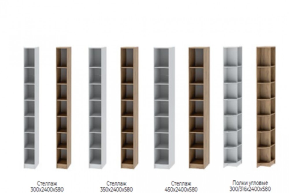 Цена указана за набор как на 1-ом фото: шкаф-1 и шкаф-4 шириной по 800мм, шкаф-3 400мм и угловые полки.