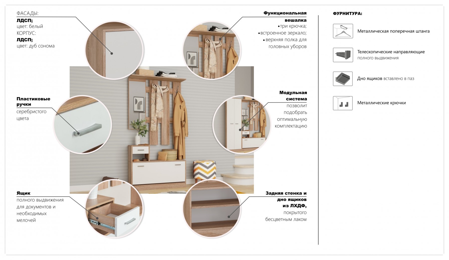 Модульная коллекция мебели в прихожую. Материал: ЛДСП.