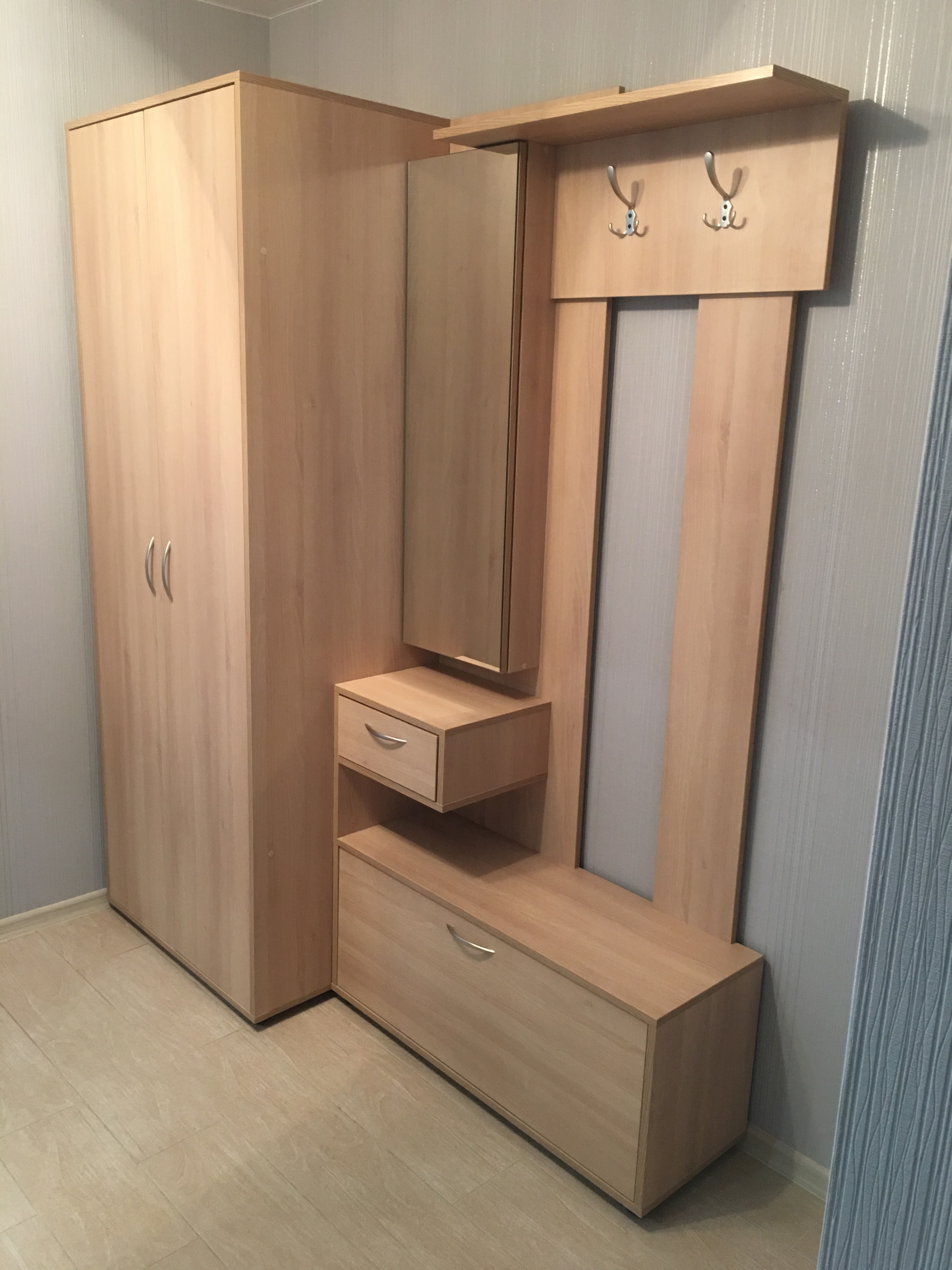 2ств шкаф для одежды, обувница, вешалка, зеркало, полки.