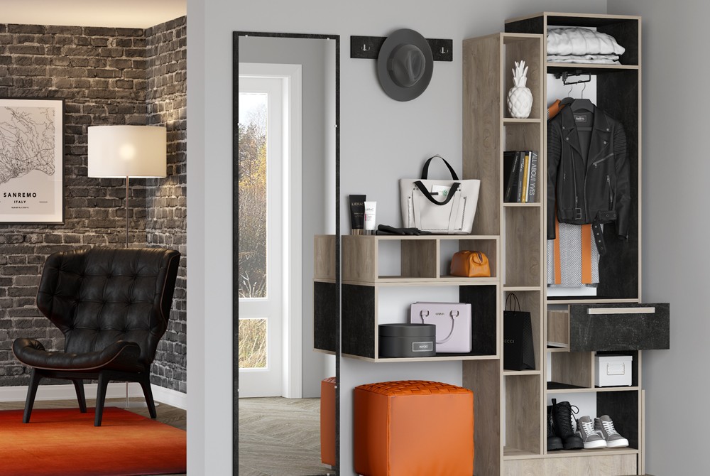 Мебель для прихожей в декоре с имитацией фактуры березовой коры. Материал – ЛДСП.