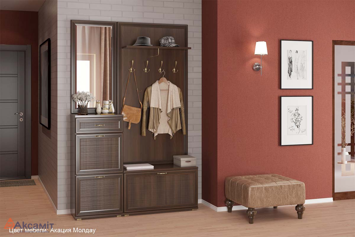- Вешалка ВШ-1002 (Акация Молдау). Габариты (ШхГхВ) в мм - 900х264х1710