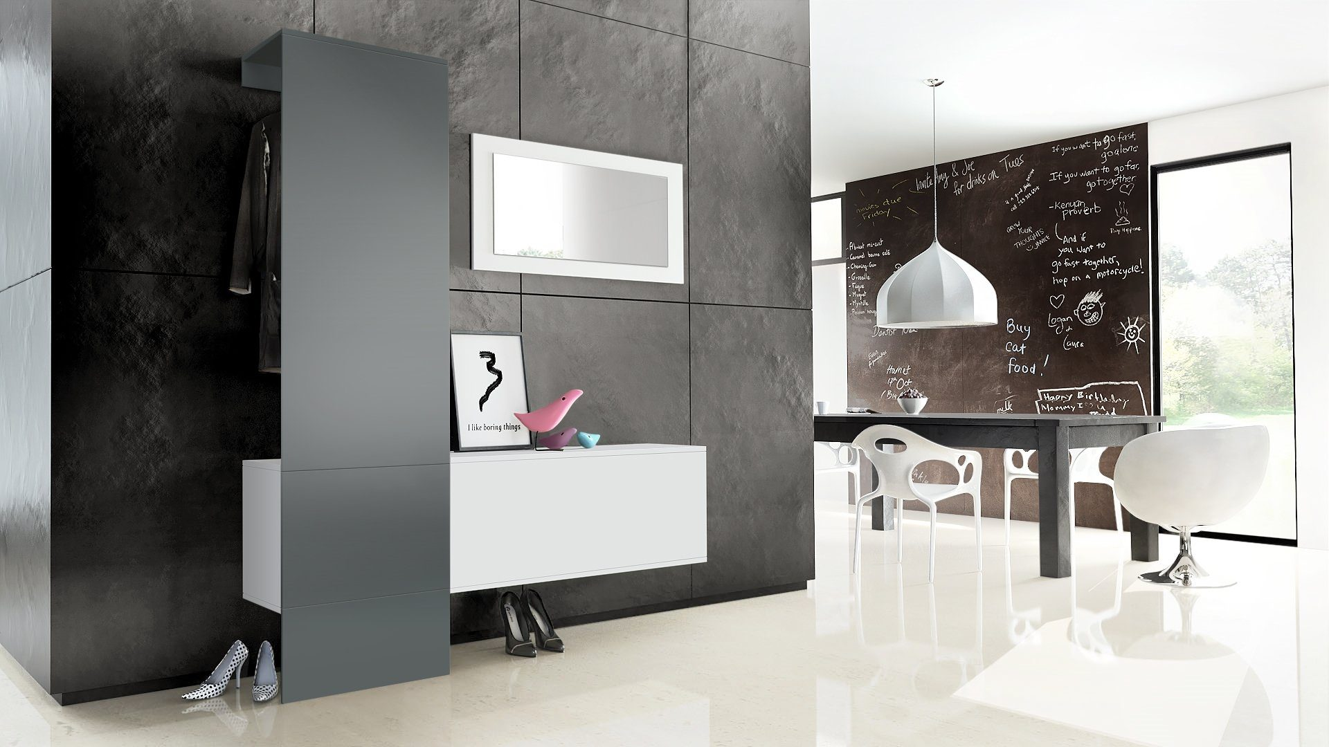Элегантная коллекция мебели с запоминающимися рельефными фасадами в цвете антрацит. Материал: МДФ, ЛДСП.