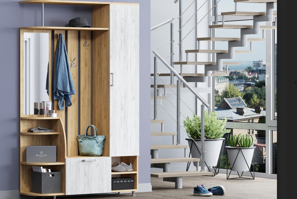 Уникальная прихожая с необычной формой, которая станет центром притяжения в вашем интерьере. Выберите из четырех доступных вариантов цветового исполнения и создайте стильный и яркий акцент в своем помещении. Бонусом является возможность собрать ее как на левую, так и на правую сторону, для максимального удобства.