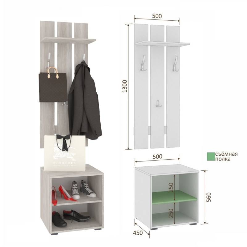 - Секция в прихожую ЛАРА СП2, размеры Ш-500, В-2200, Г-450 мм.