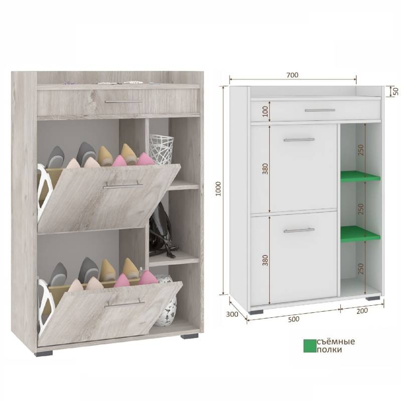 - Тумба для обуви ЛАРА ТП4, размеры Ш-700, В-1000, Г-300 мм.