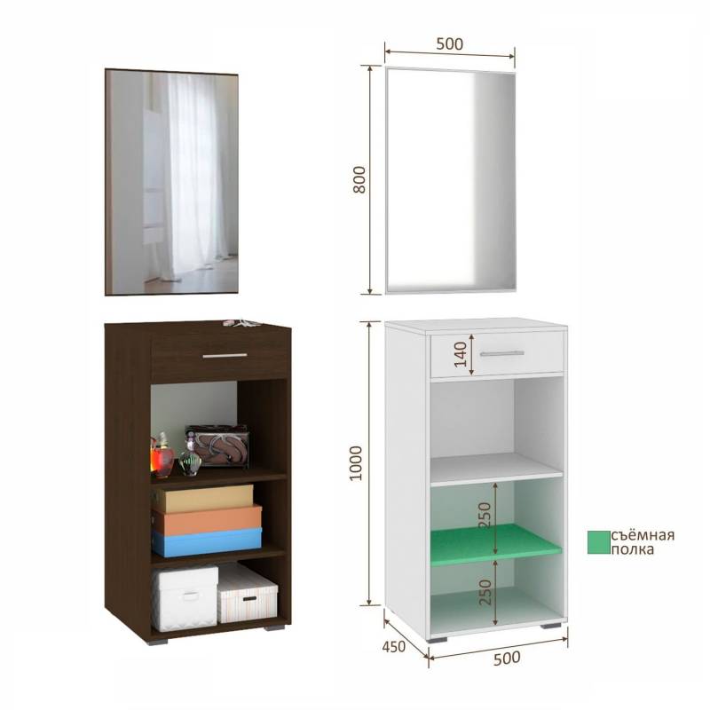 Тумба обувная из ЛДСП с ящиком и нишей для зонтов и сумок, настенное зеркало.