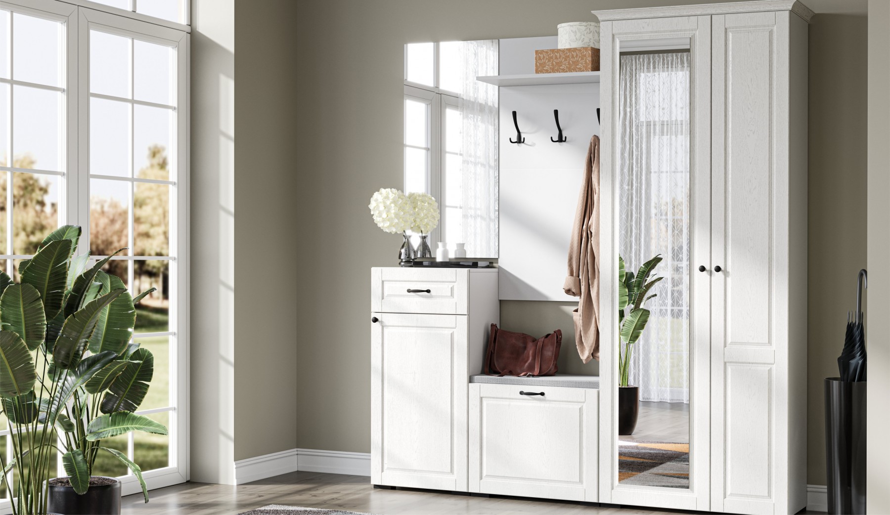 Прихожая «Лацио» Белое дерево (ручка черная)