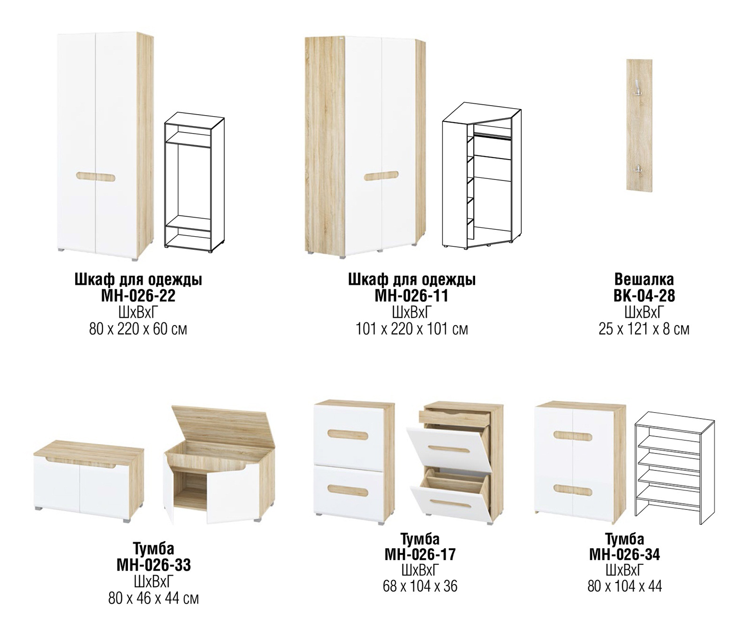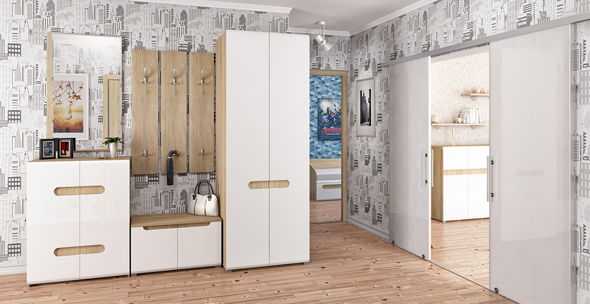 Прихожая «Интер» дуб сонома-белый, с распашным шкафом (1.56м)