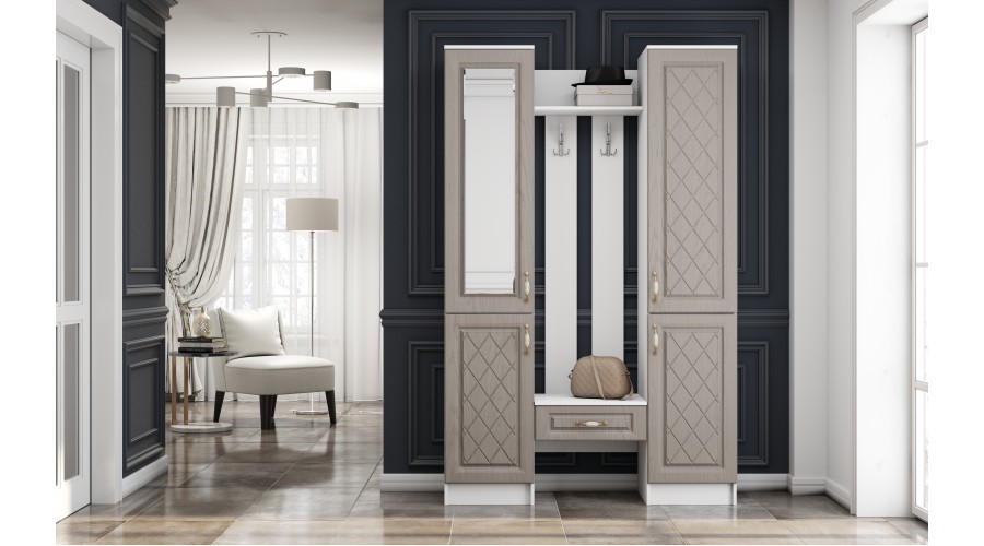 Модульная коллекция мебели в классическом стиле для прихожей. Материал: МДФ покрытый плёнкой, ЛДСП.