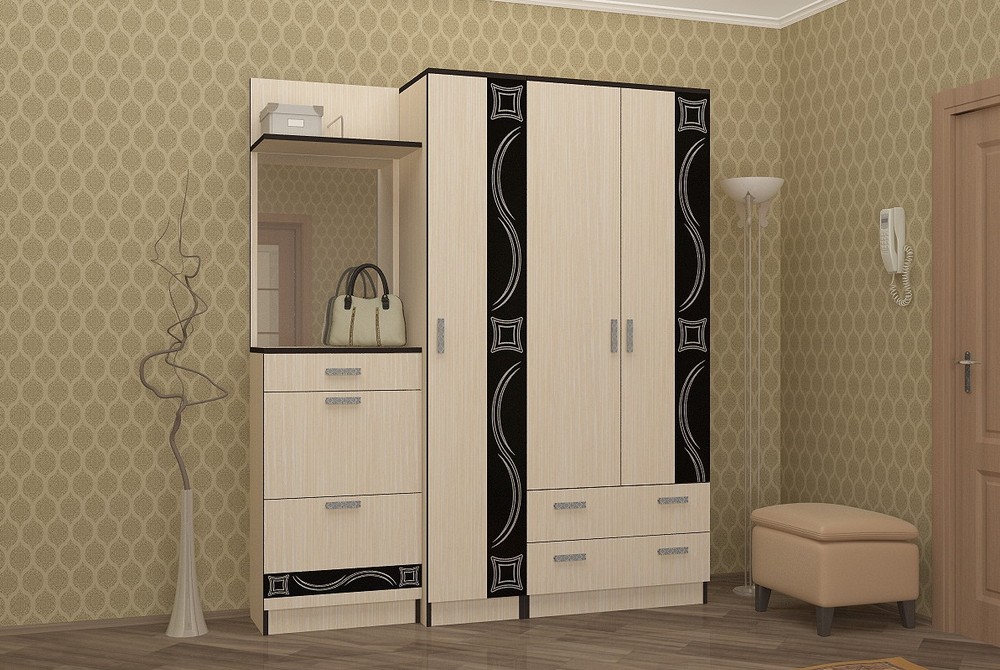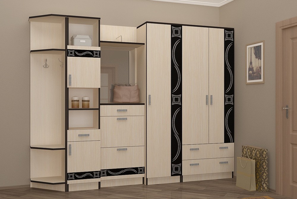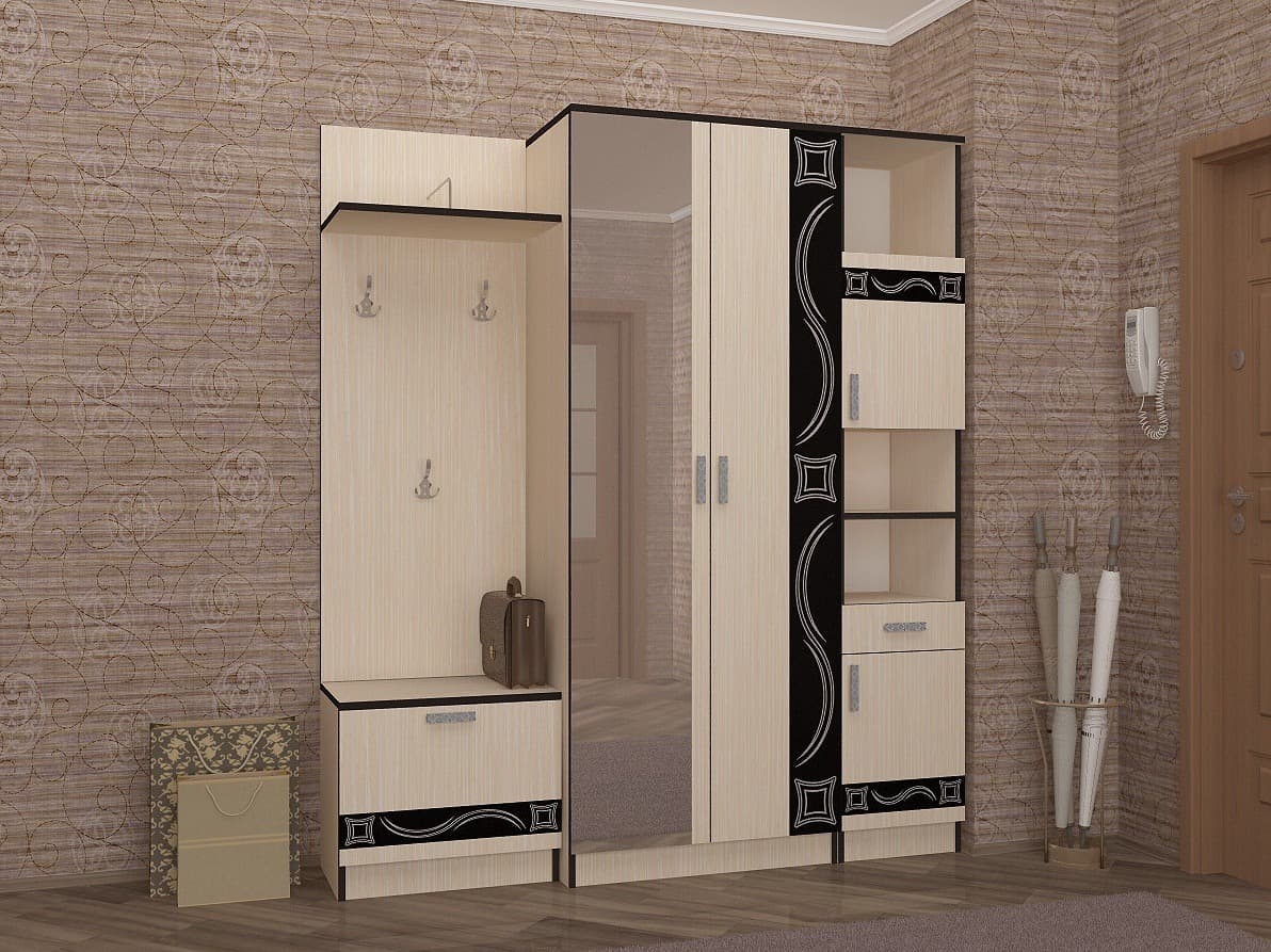 Модульная функциональная система в прихожую. Материал: ЛДСП, зеркало с фацетом.