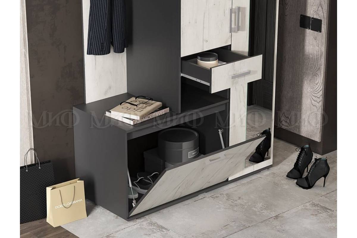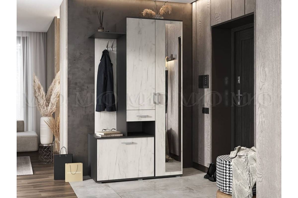 Цвет прихожей: Графит - Дуб Крафт белый.