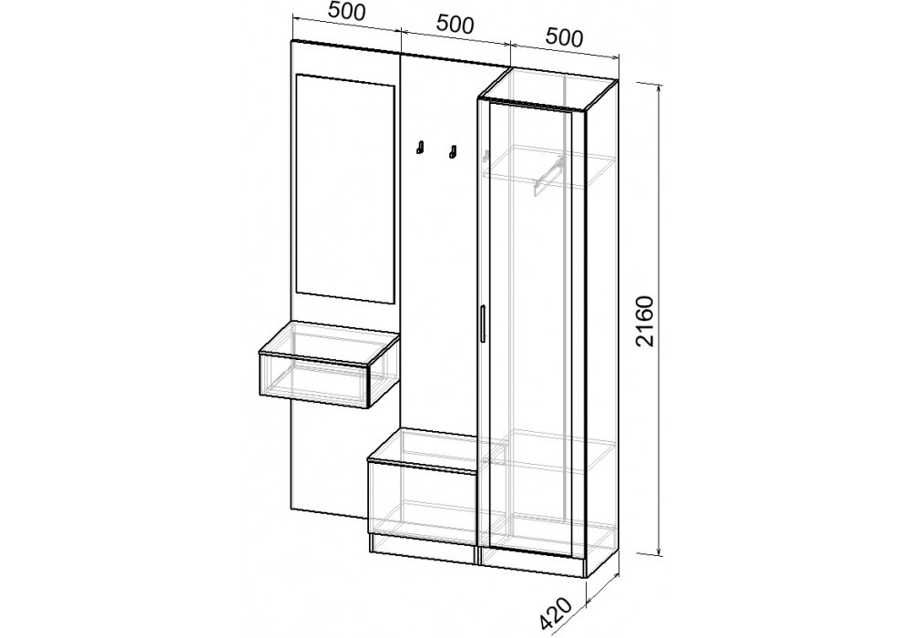 Размер (ШхГхВ): 2000x510x2654 мм. Материал: ЛДСП.