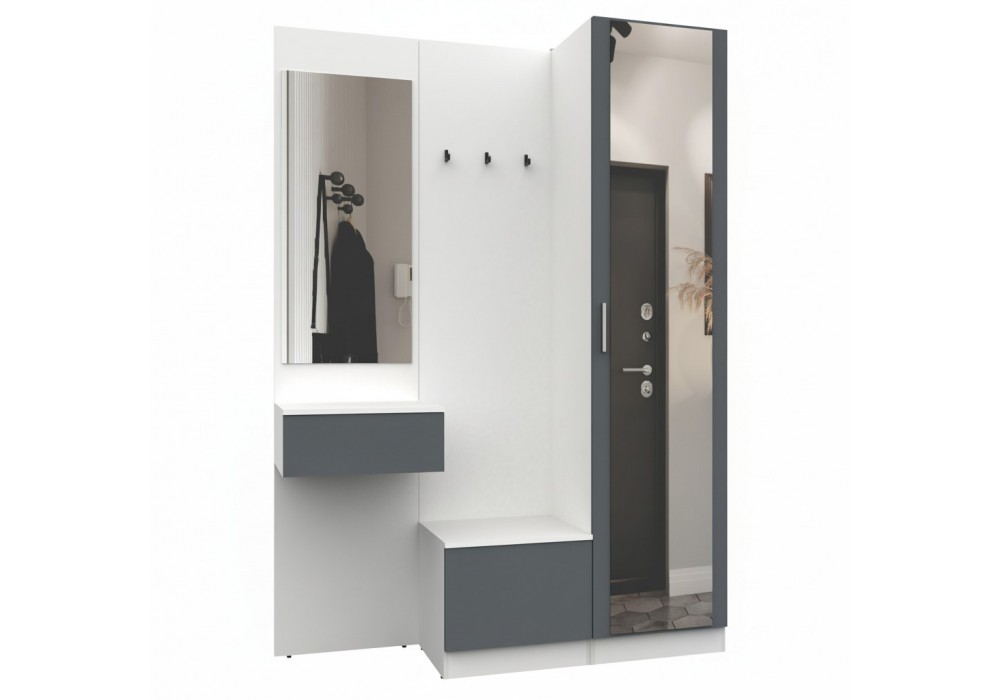 Прихожая «Антре 65.08+65.07» (белый/дуб вотан/ткань велюр велутто кремовый 18) фабрика Олмеко