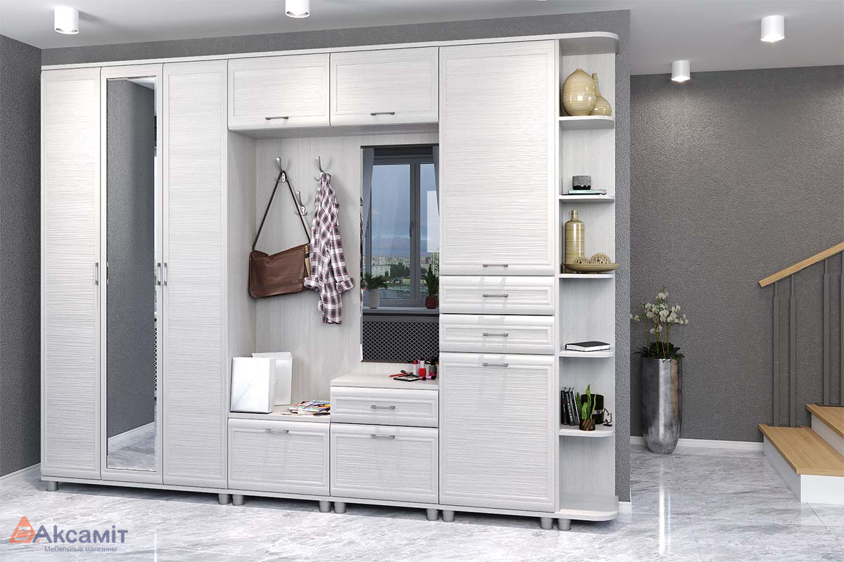 - Обувницы, открытые вешалки для верхней одежды, множество вариантов шкафов с глухими и зеркальными фасадами, адаптированных под любые помещения - все, для создания идеальной прихожей.