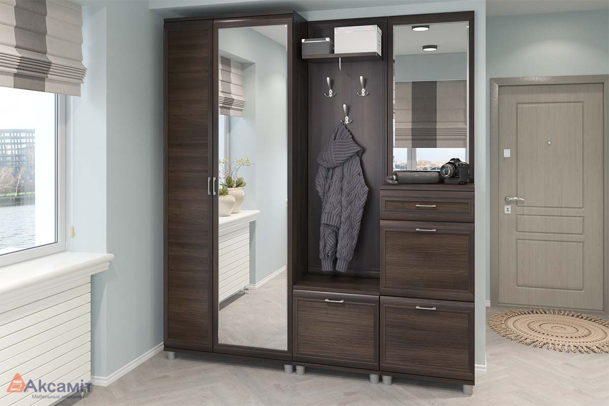 - Обувницы, открытые вешалки для верхней одежды, множество вариантов шкафов с глухими и зеркальными фасадами, адаптированных под любые помещения - все, для создания идеальной прихожей.