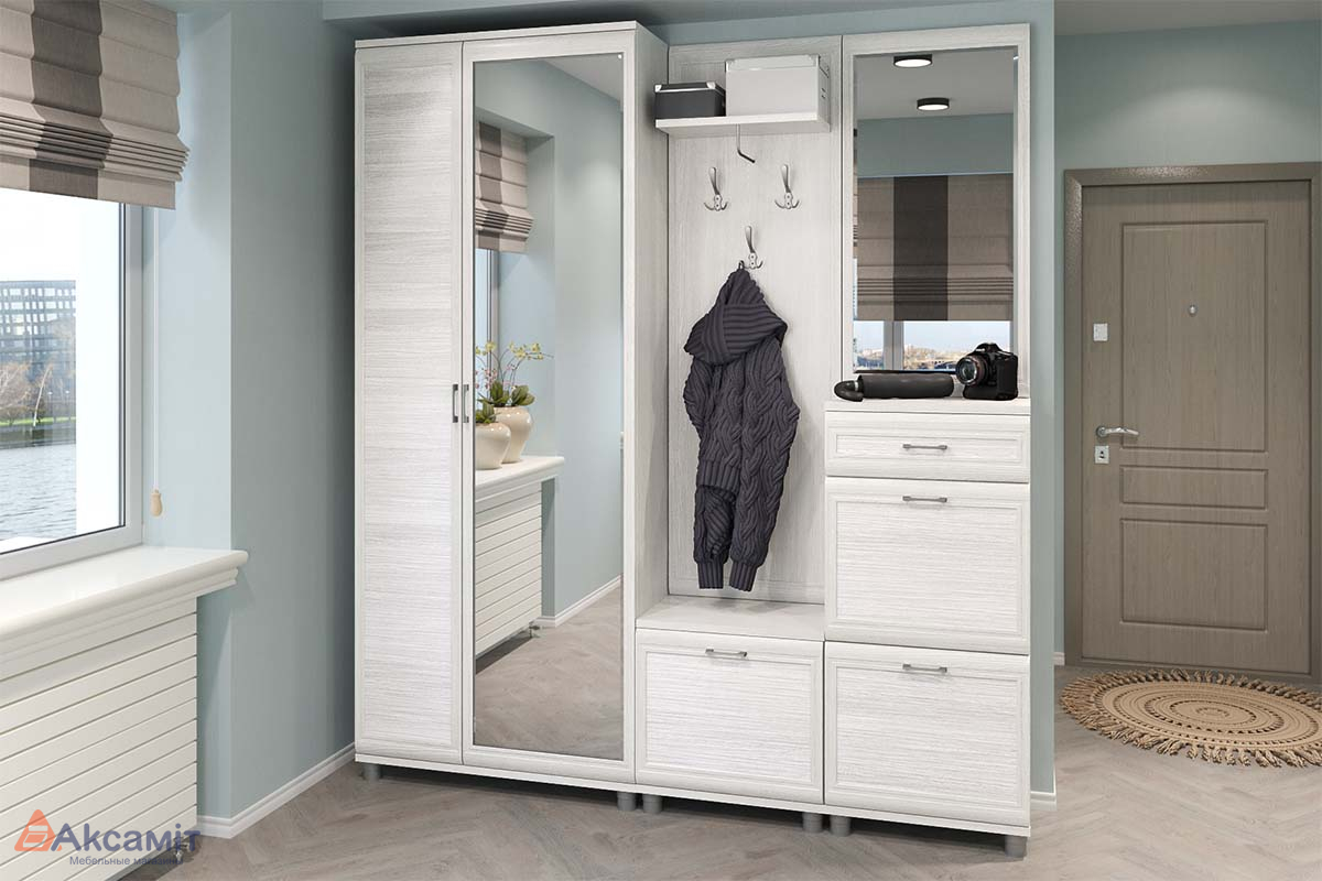 - Обувницы, открытые вешалки для верхней одежды, множество вариантов шкафов с глухими и зеркальными фасадами, адаптированных под любые помещения - все, для создания идеальной прихожей.