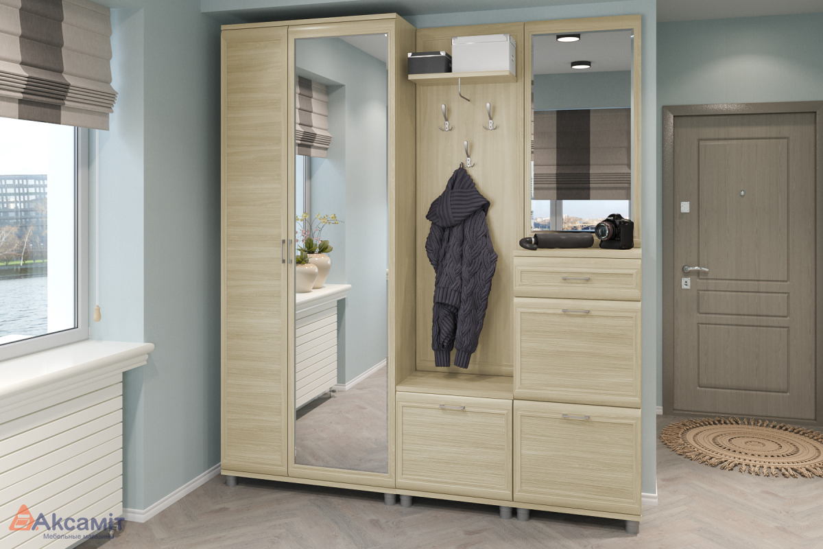 В линейку входит вешалка с тумбой, зеркало навесное, зеркало с декором, тумба, тумба для обуви, шкаф, шкаф угловой.